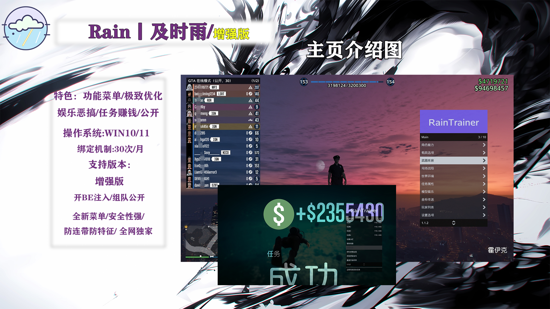 菜单兼容系统Win10\Win11,支持三大平台Steam、Epic、R星