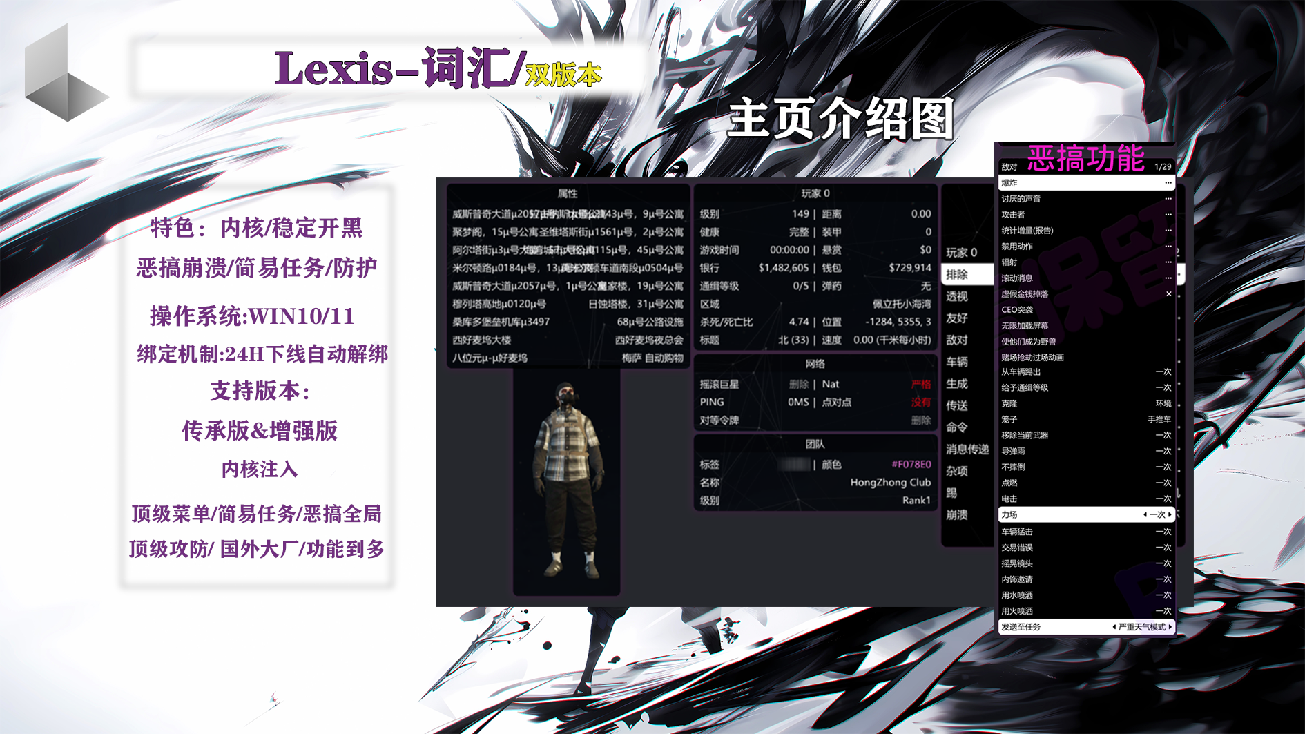 目前菜单都已经对WIN10/WIN11系统进行兼容,如果你打开软件注入时出现崩溃问题,可以尝试修复DX运行库,这些都是很好解决的问题。
